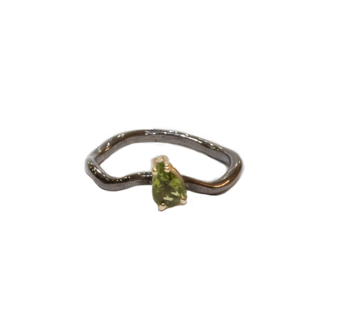 An impressive ring with two semi-circles joined in the center of one another. The reversed...