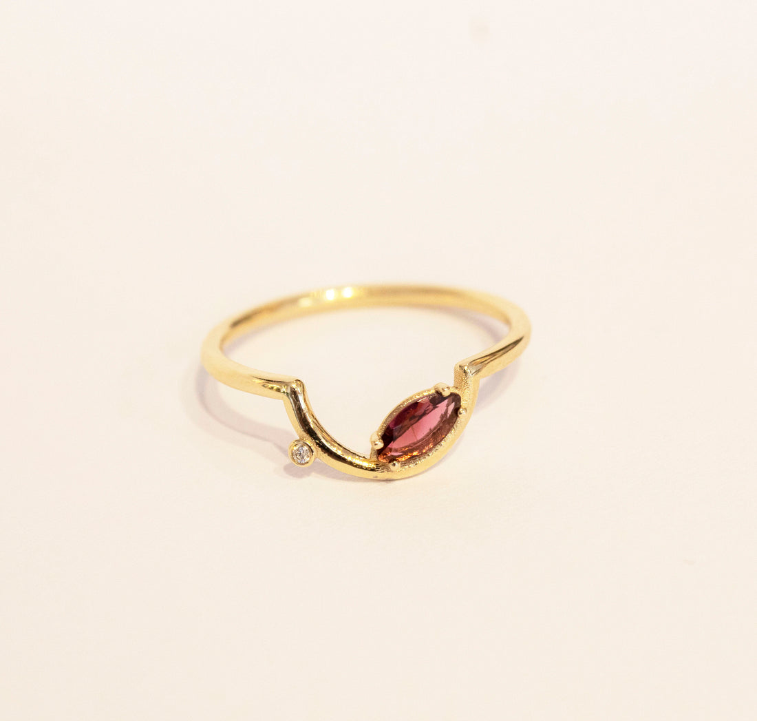 Smile Tourmaline and Diamond Ring 9 karats Gold