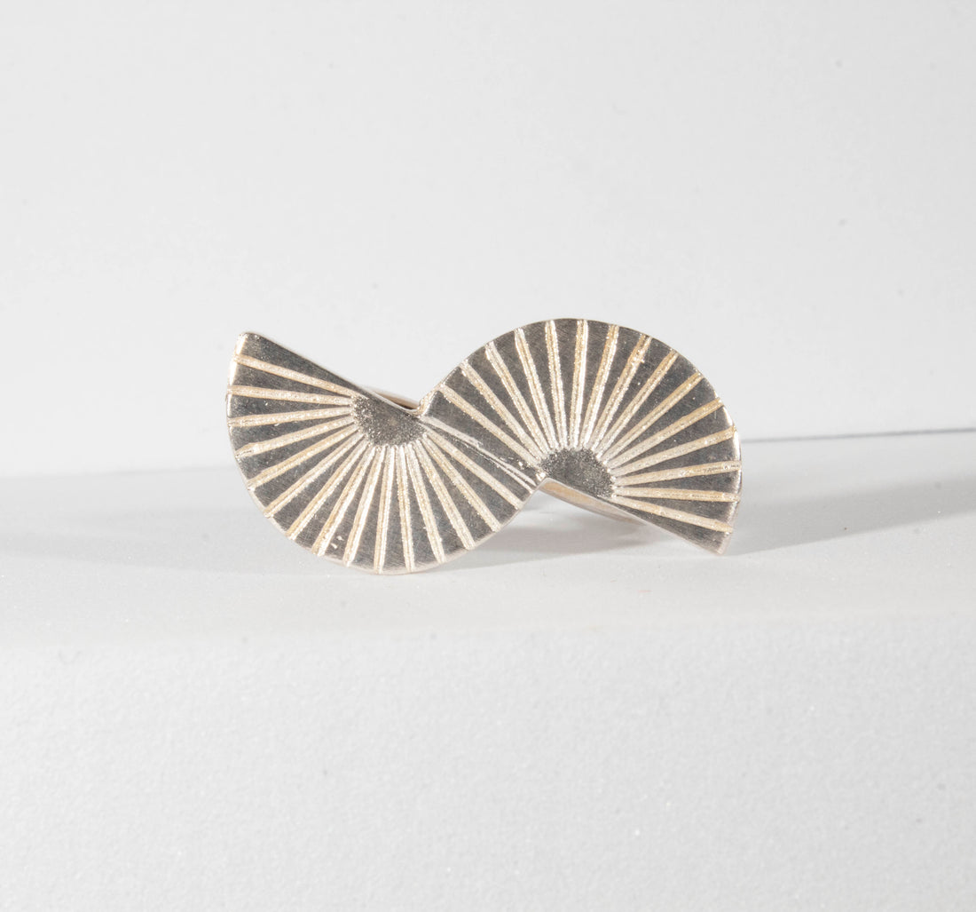 Retro Lotus Joined Semi-Circles Ring