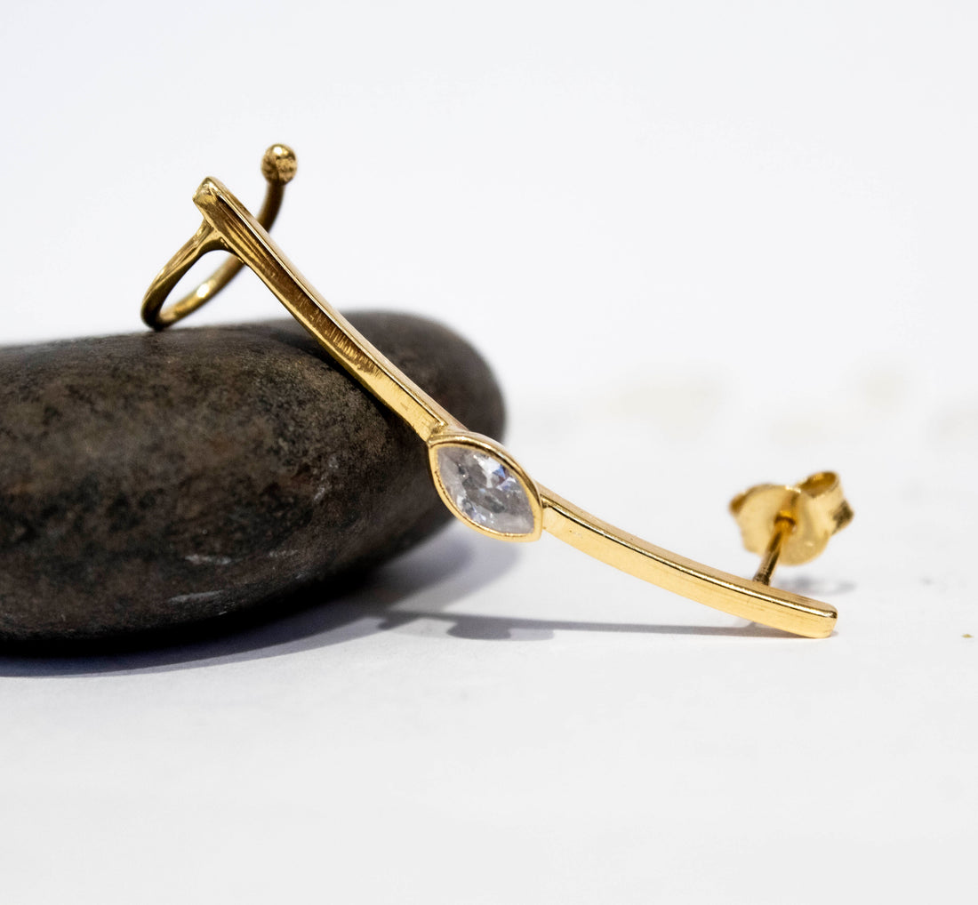 A unique design ear cuff with a marquise white zircon stone in the middle is...
