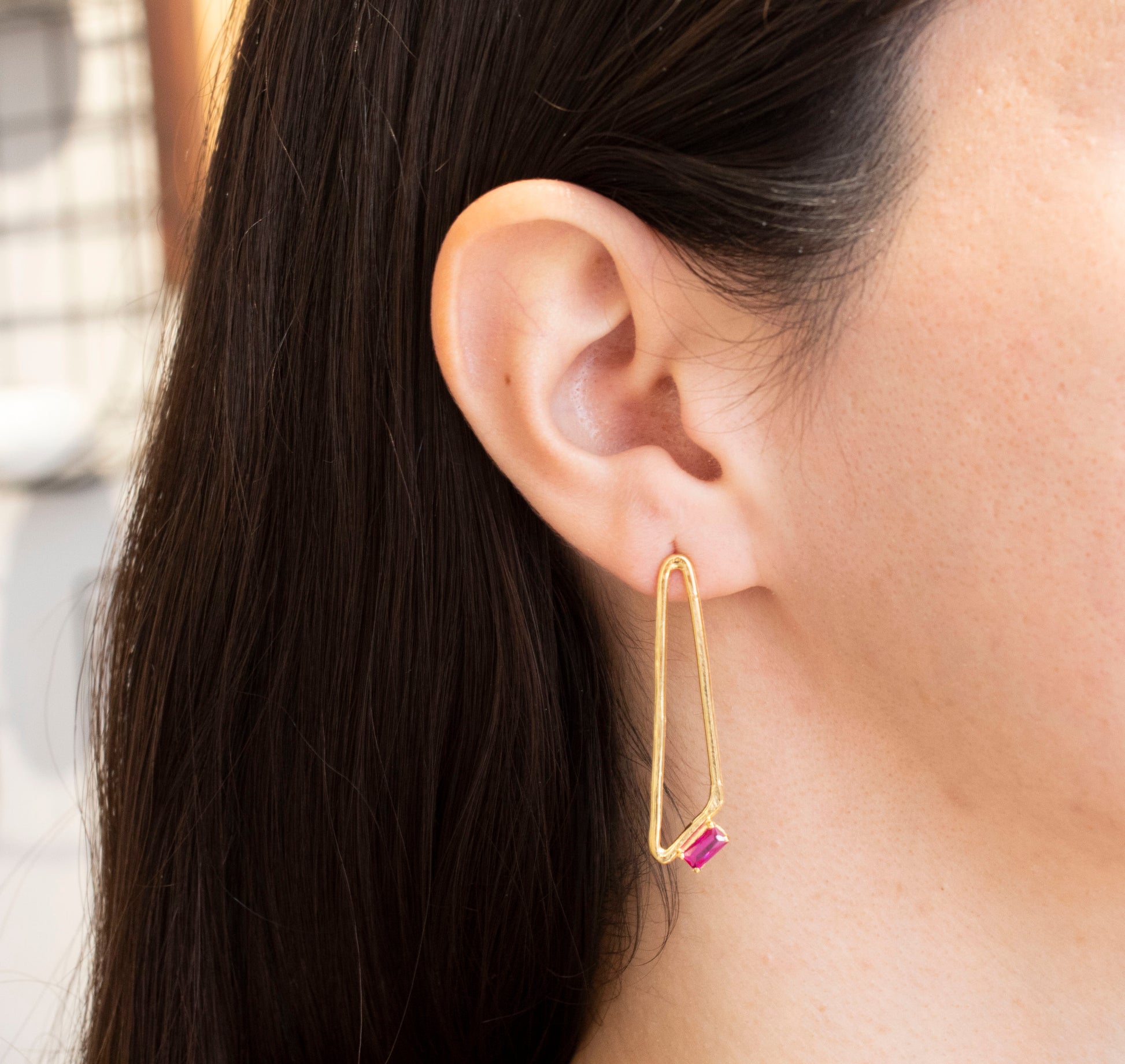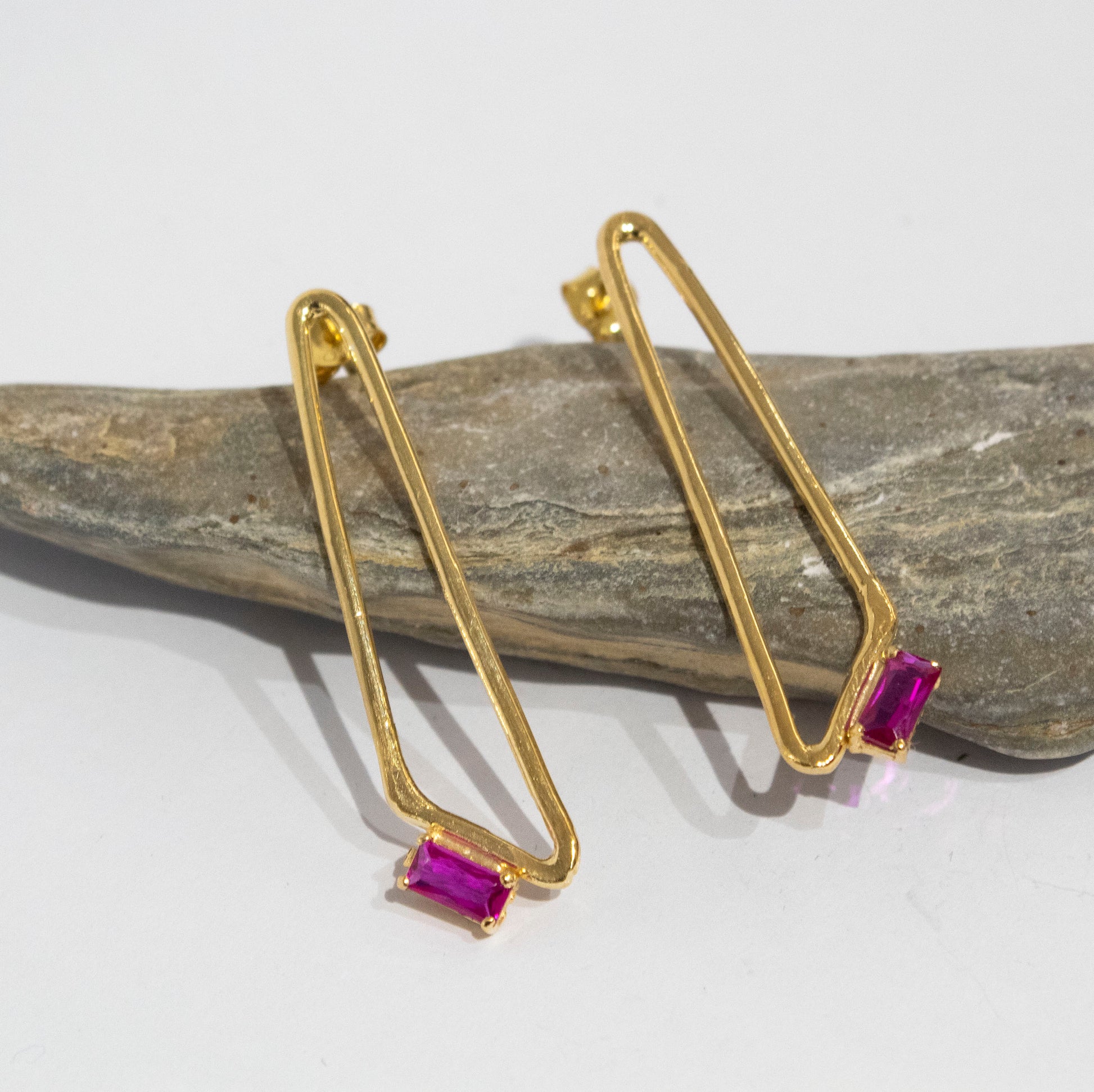 Σκουλαρίκια Simplicity Μεγάλα τρίγωνα με ροζ ζιργκόν