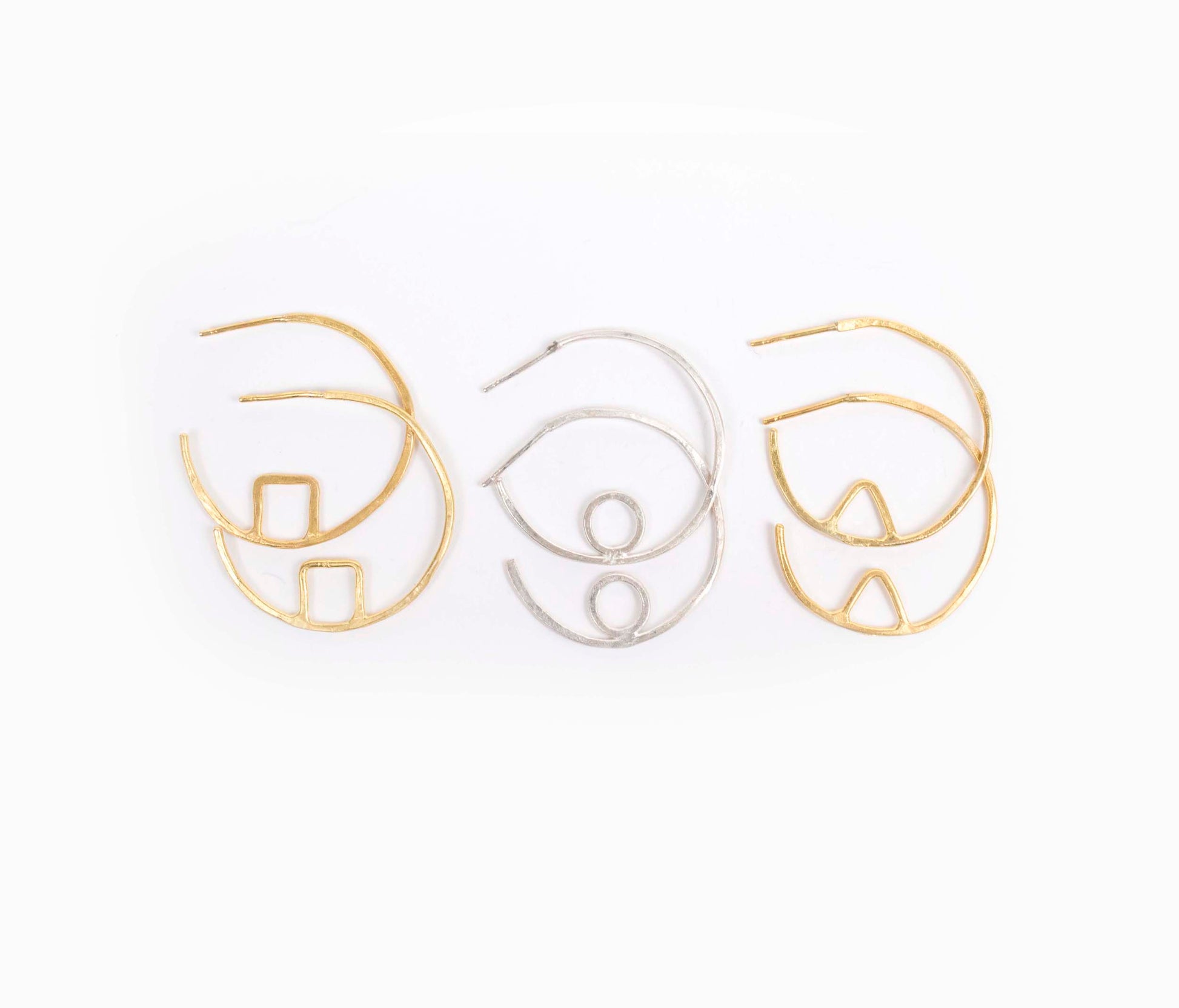 A pair of special and unique thin hoops with a framed triangle balancing in the bottom of the hoops. These hoops can match to any stylish, elegant, classy outfit of your choice.