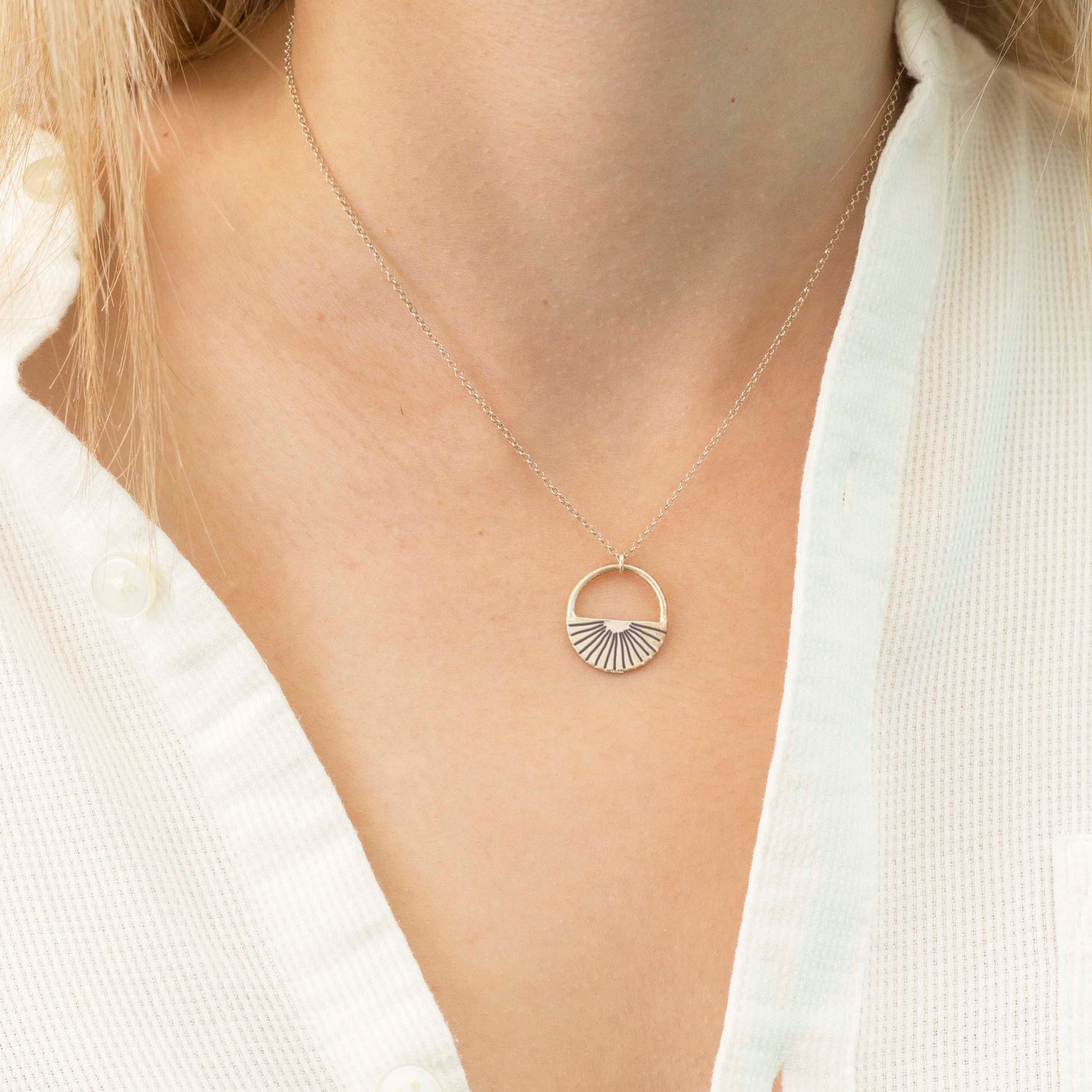 A medium-sized unique circle necklace made of sterling silver. Elegant and simple ,a jewelry piece that can be worn in every occasion. You can choose between oxidized sterling silver and gold-plated charm with a chain in black platinum.