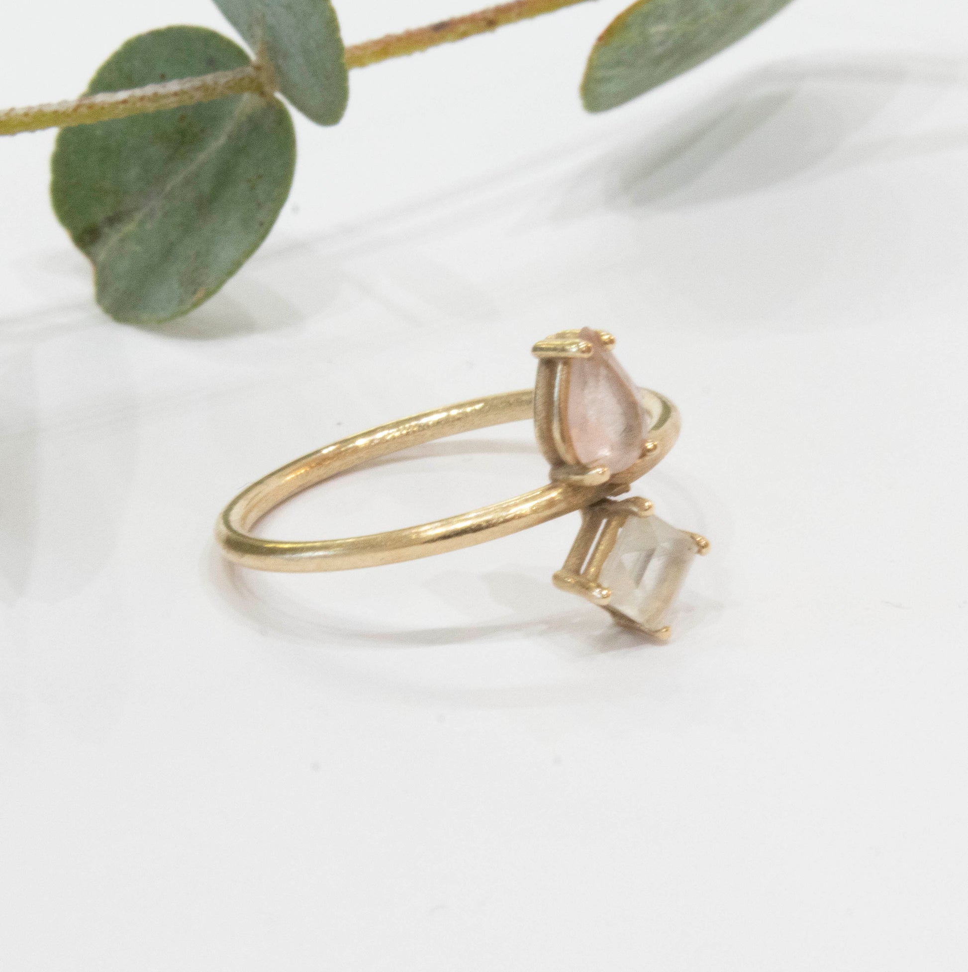 - Material: Yellow Gold 9 karats , Pear Shaped Tourmaline and Square Shaped Topaz