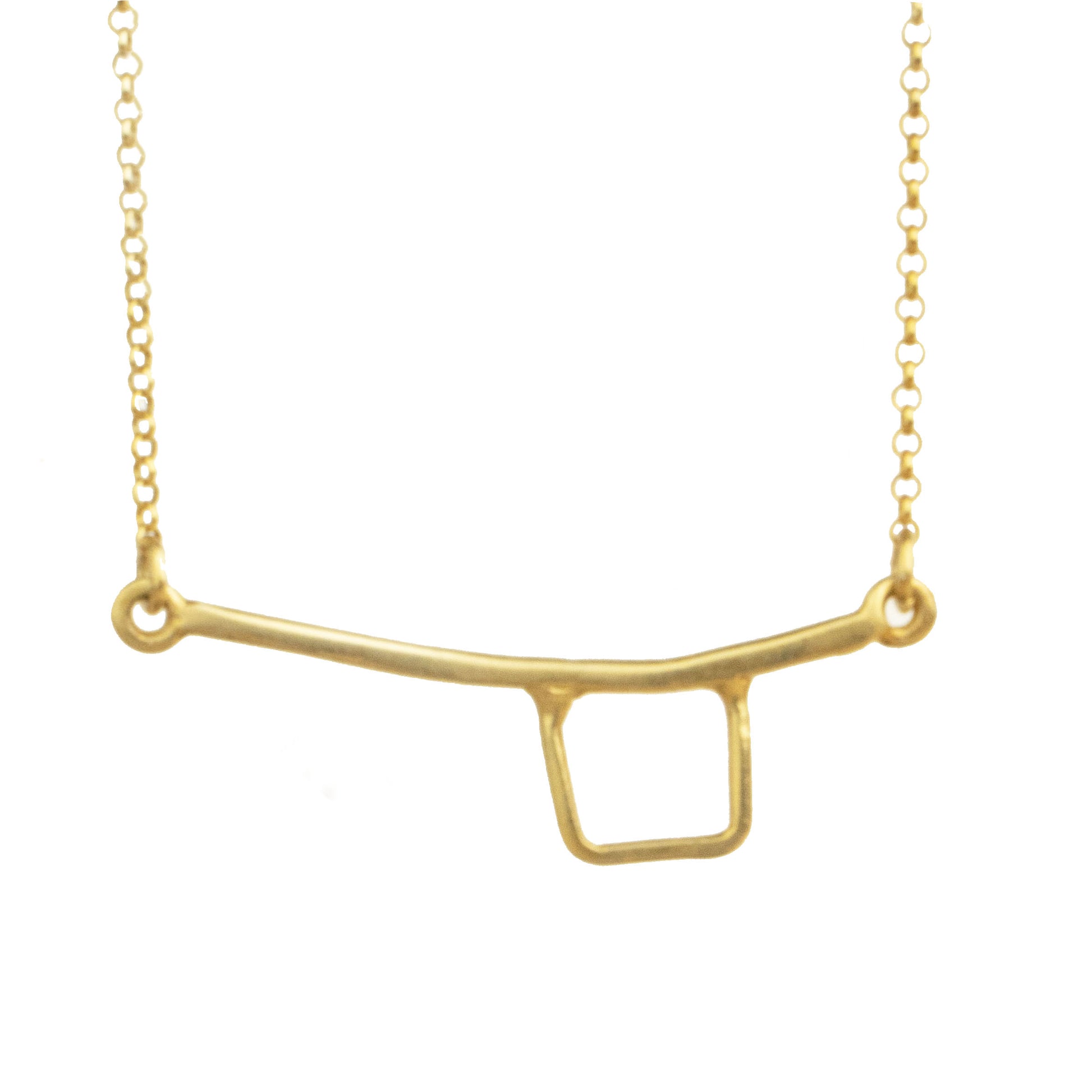 Simplicity meets handcrafted jewelry. This minimal necklace is a line with an empty rectangle hanging in the one edge of the line. Easy to wear and perfect choice for layering necklaces.