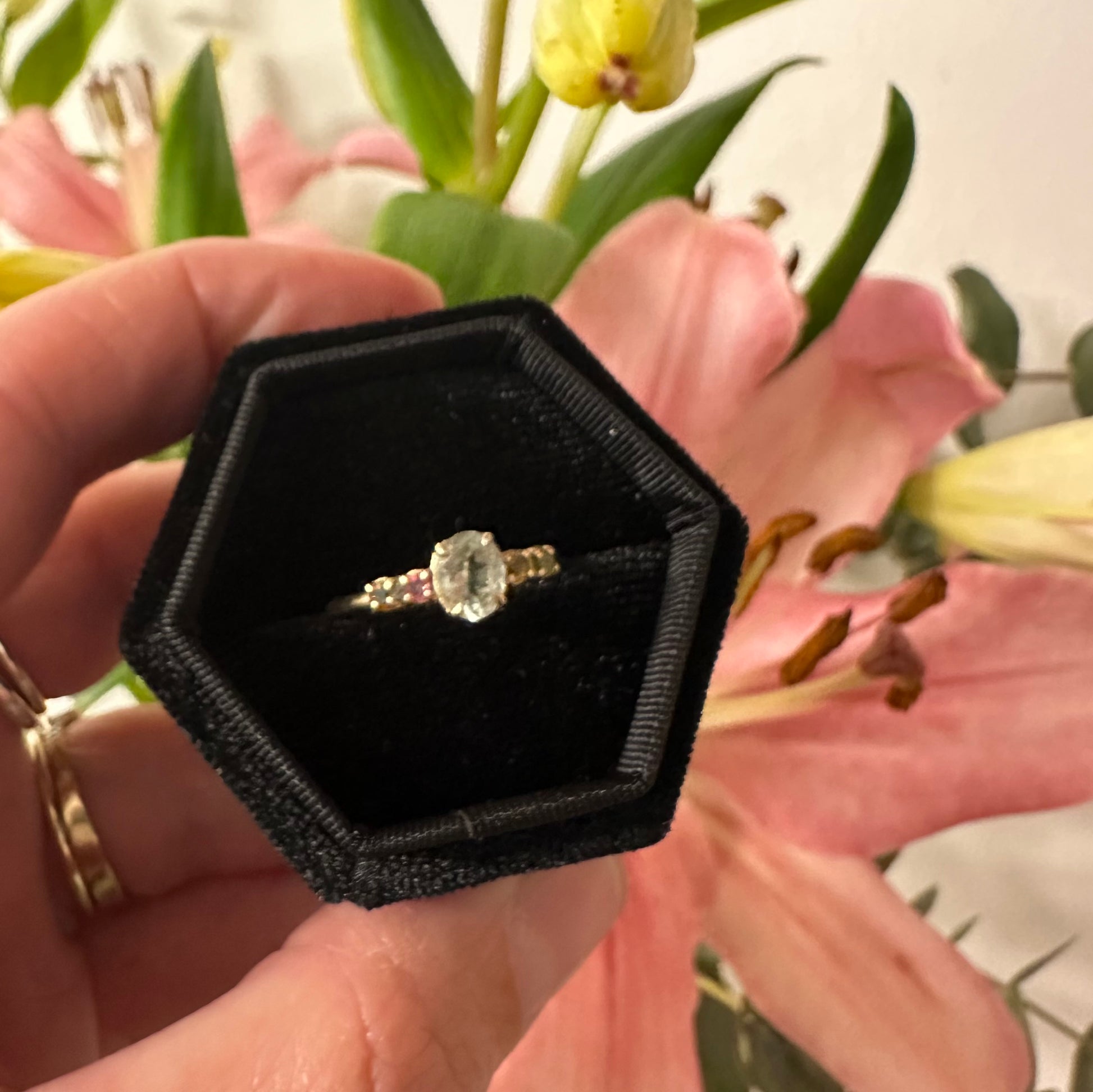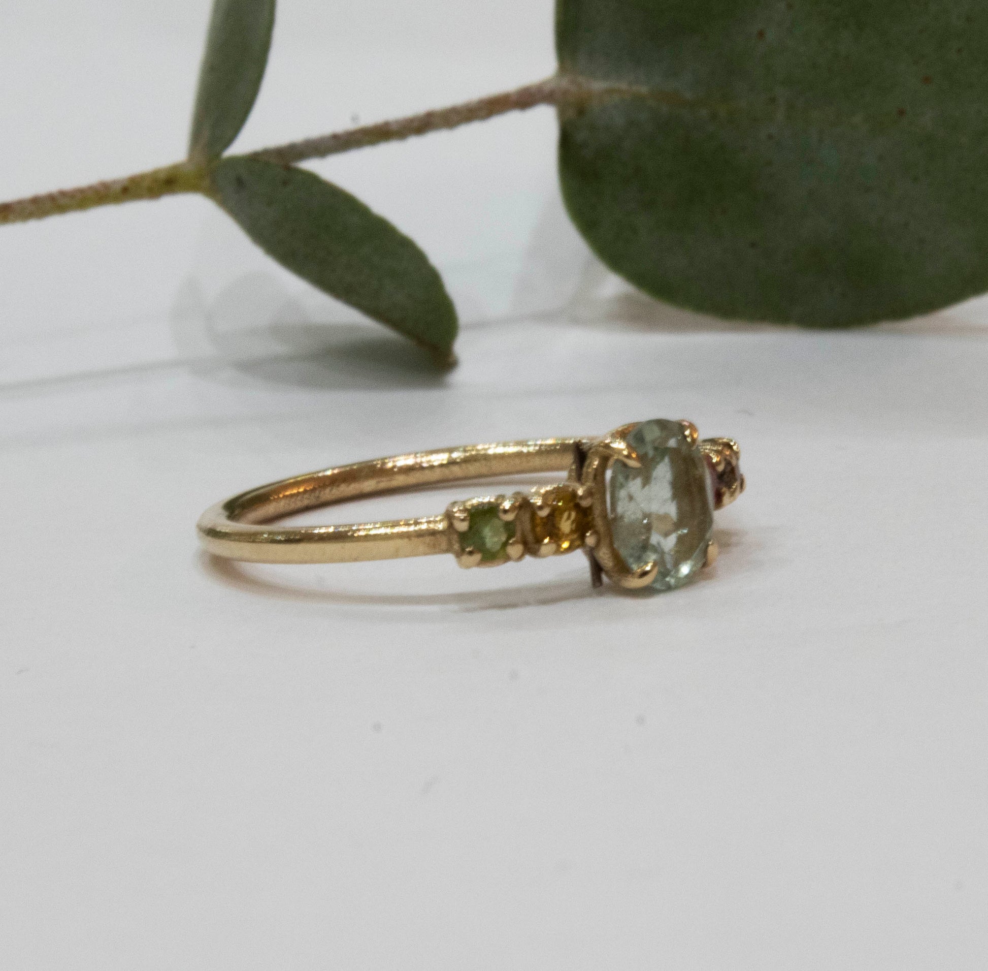 - Material: Yellow Gold 9 karats , Oval Light Blue Tourmaline and round Tourmalines