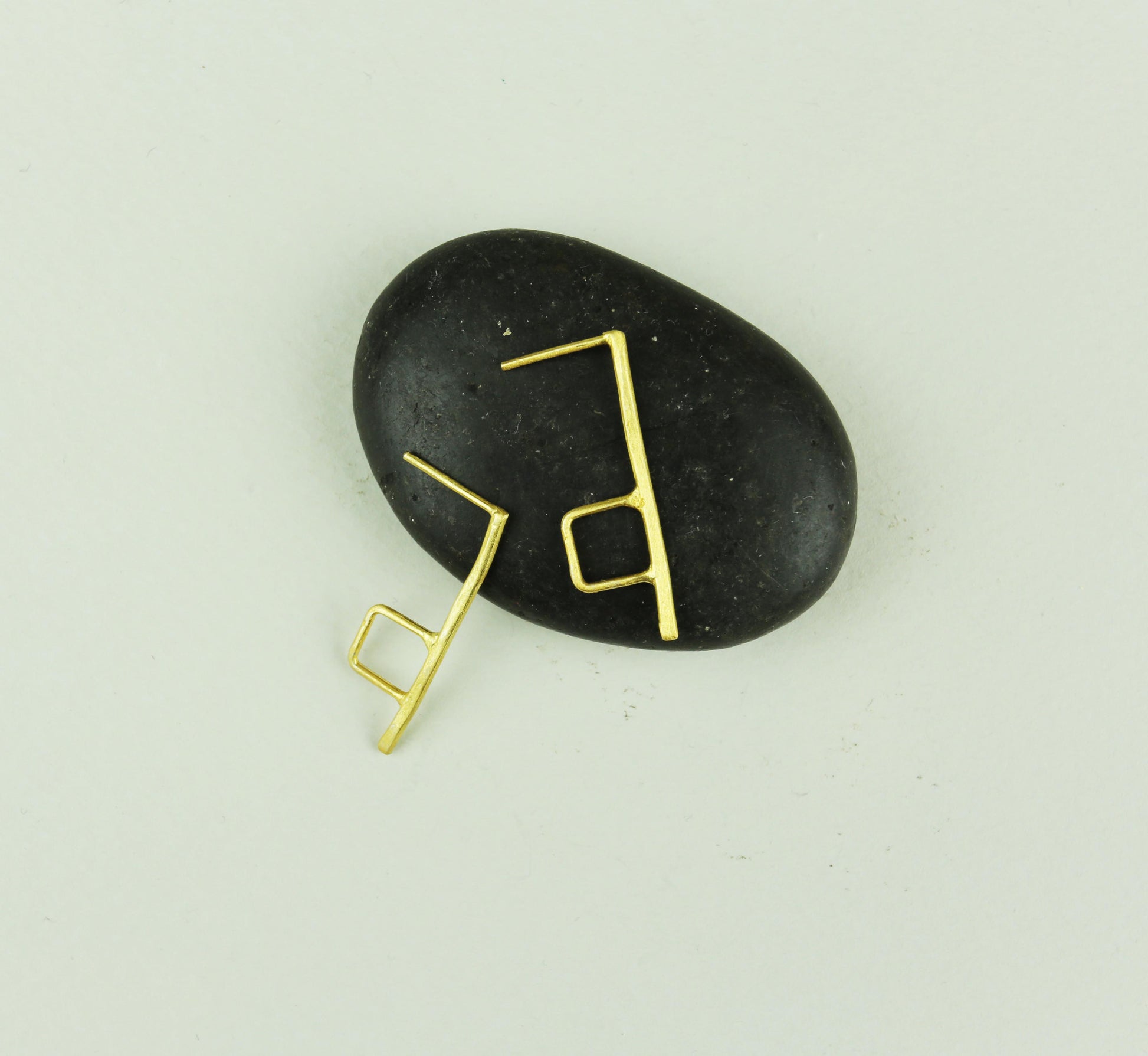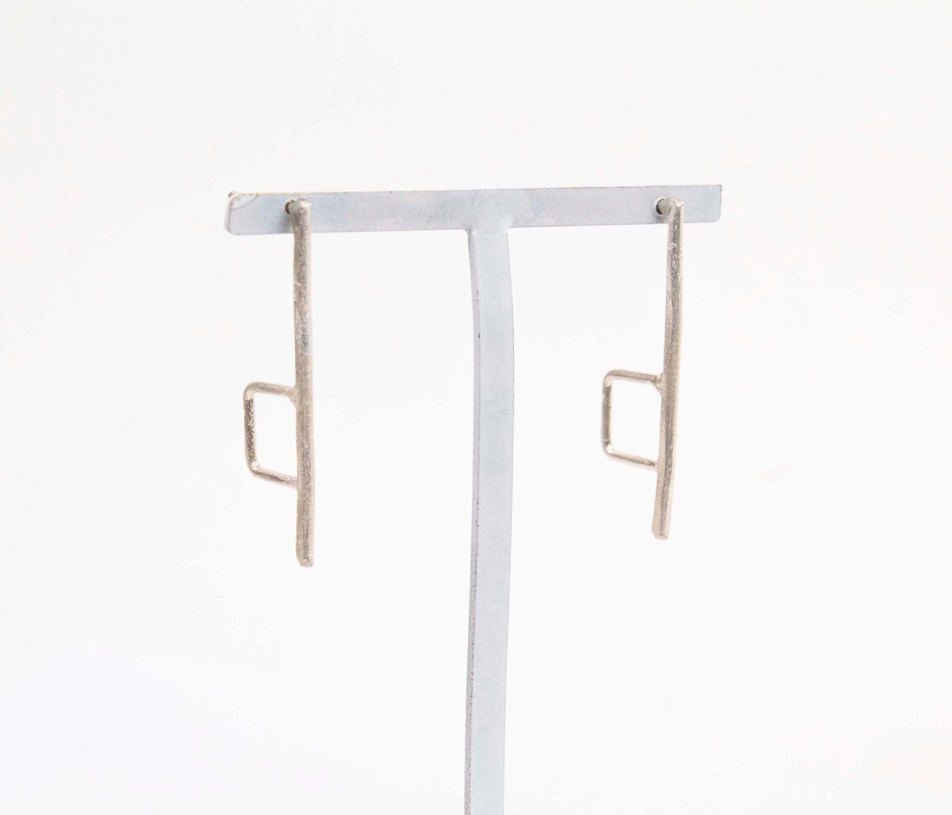 A pair of earrings that are inspired by Bauhaus movement in minimal design. These earrings as you wear them , in the front are like a simple line , but profiled is a framed rectangle attached to a line harmoniously.
