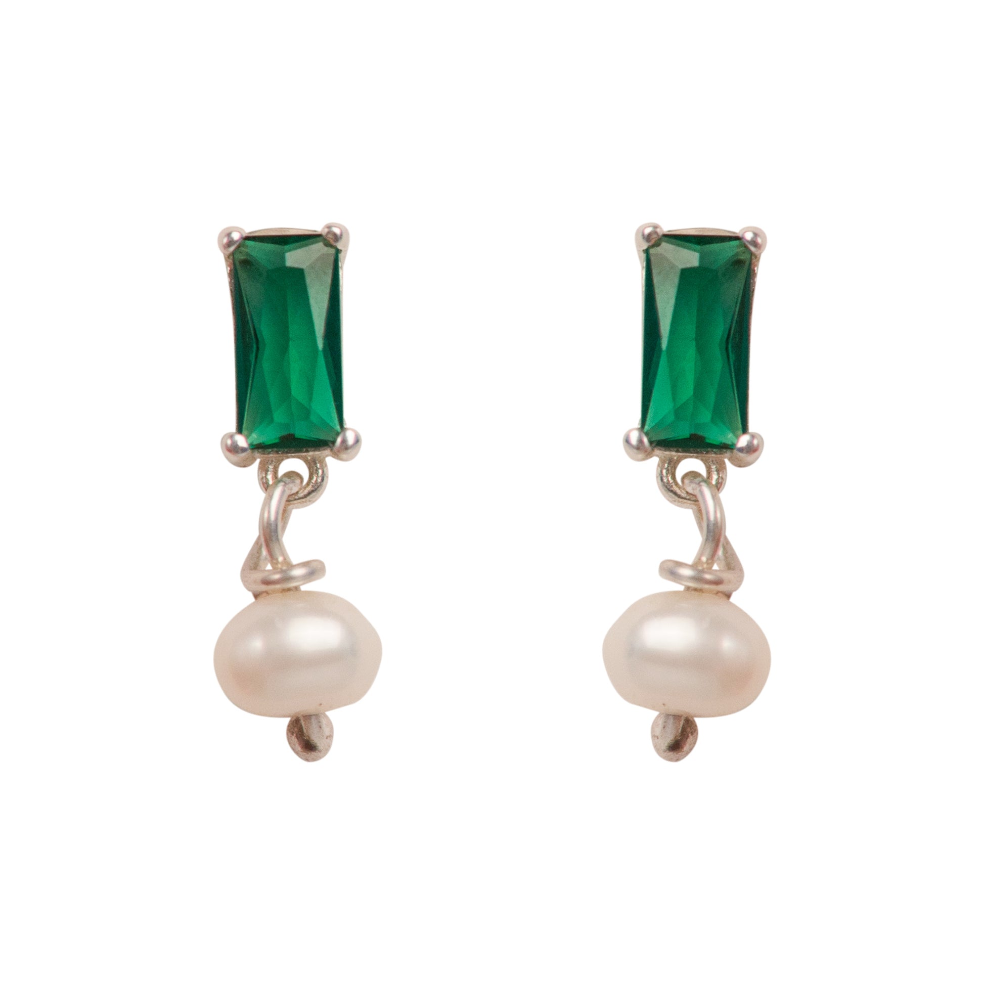 Simplicity Baguette Green Zircon Pearl Stud Earrings